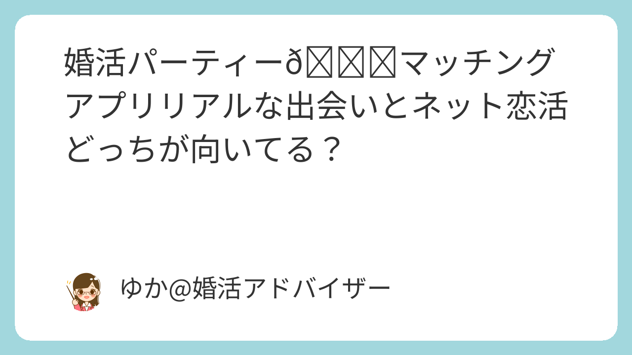 Q1. 婚活パーティーとマッチングアプリ、どっちが出会える?💘